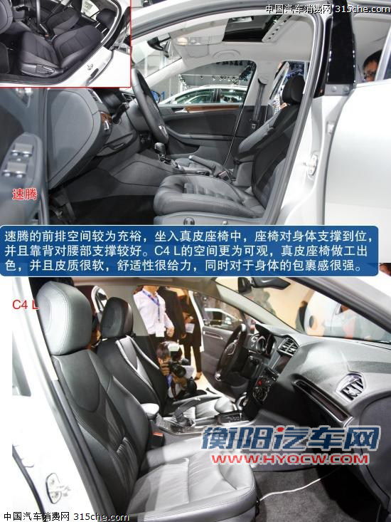 较大的车身尺寸,让内部乘坐空间得到了很好的保障。速腾的前排空间较为充裕,坐入真皮座椅中,座椅对身体支撑到位,并且靠背对腰部支撑较好。C4 L的空间更为可观,真皮座椅做工出色,并且皮质很软,舒适性很给力,同时对于身体的包裹感很强。