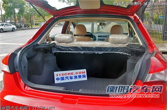 车内的储物空间也令人相当满意,为日常使用带来了不少方便,毫不逊色于赛欧。后备箱常规容积为450L,放倒后扩大为1450L,比赛欧更能装,掀背式的车门设计也让装载更为方便。
