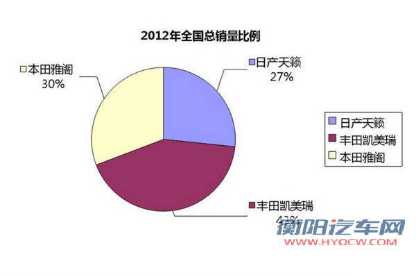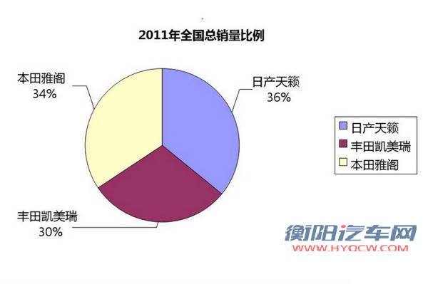 前文我们已经说过,B级车的销量相对较大,所以天籁面对的竞争对手也很多,其中最主要的就是另外两家日本企业——本田和丰田。