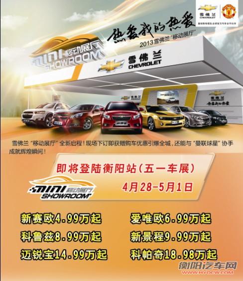 衡阳汽车网讯:4月28日起,以“热爱我的热爱”为主题的雪佛兰移动展厅式路演正式登陆衡阳。这场雪佛兰年度盛事将跨越2013年整年,覆盖全国多个区域城市,共400余场次,并分别推出标准版、基础版与黄金周版等不同版本的“展厅”,全面结合“天时地利”,充分贴近区域消费者的个性化需求。