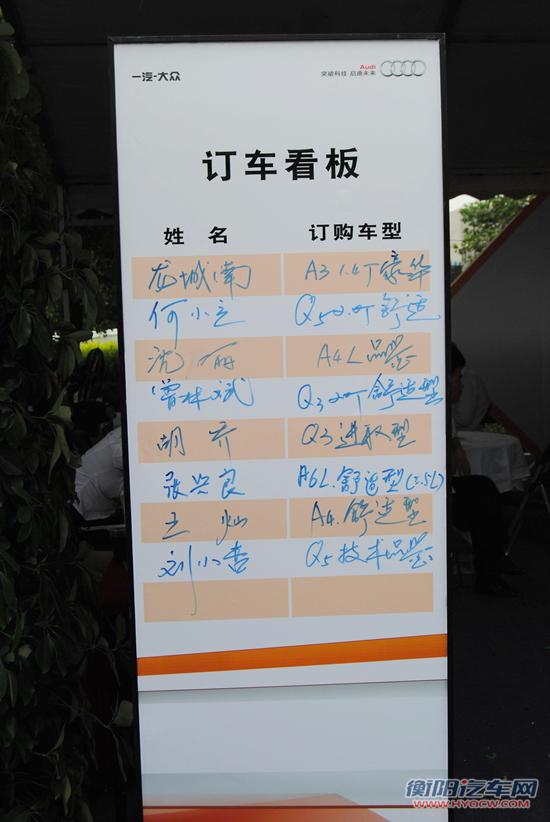 衡阳汽车网4月29日讯:衡阳市春季汽车博览会的第二天。衡阳华源在51车展现场举行国产奥迪Q3媒体见面会。编辑还注意到华源奥迪车展看板上Q3订车客户已经有2位了。车展现场服务电话:18674760606资先生(22展位)。