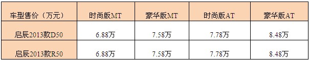 衡阳汽车网讯:4月10日,东风日产宣布启辰2013款D50、R50正式上市,新车共推出四大全新级别,售价区间为6.88-8.48万元。即日起,全国各启辰专营店全面开始接受2013款新车预订,实车将自本月中旬陆续到店。