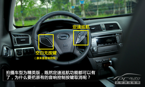 既然定速巡航都能给了,为何要把音响按键去掉呢?这个省不了多少成本吧,方向盘左侧几个“死键”跟右边看着摸着都非常不对称,实在有点不应该。