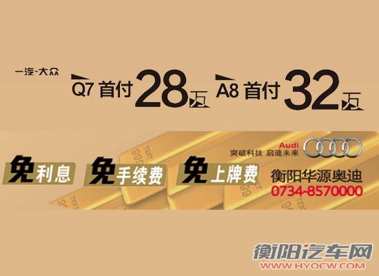 衡阳汽车网讯:2014新年、豪车马上有!衡阳华云奥迪举行豪车金条马上有活动。奥迪Q7,28万起;奥迪A8L,32万起,免利息免手续费免上牌费, 购车还有金条相送!老客户介绍新客户购车也想金条好礼!详询衡阳华源。