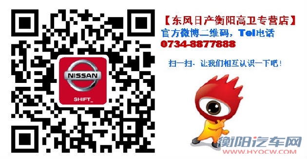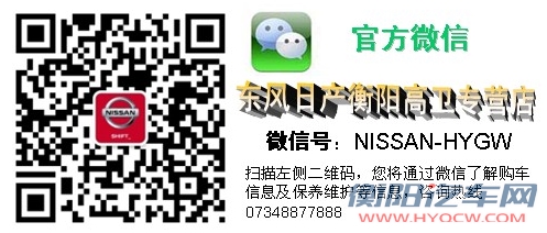 关注东风日产衡阳高卫4S店公众微信(扫一扫下方二维码),活动当天上午可进店领取精美礼品一份!