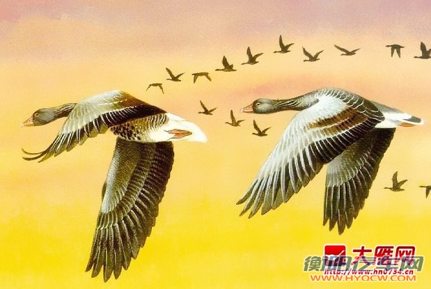 一、大雁会共同“拍动翅膀”。拍翅膀是大雁的本能,但只要排成人字队形,就可以提高飞行效率。