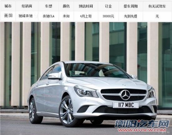 衡阳汽车网讯:奔驰新贵CLA即将上市,衡阳驰峰奔驰4s店接受广大客户预订。具体如下:
