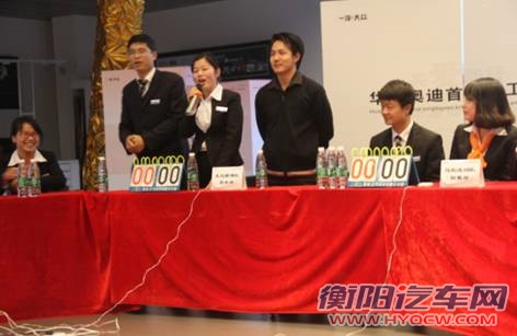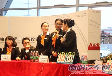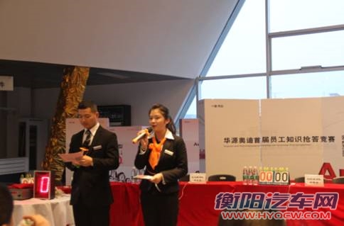 衡阳汽车网讯:3月31日晚,华源奥迪首届员工知识竞赛拉开了帷幕,来自公司各部门的5支代表队代表各部门参加了比赛。为了使团队文化管理深入人心,华源奥迪将管理知识寓教于乐,激发员工兴趣,这次的知识竞赛内容包括管理理论、企业文化、文体知识、公司发展方针等,展现了公司员工们渊博的知识和业务水平的同时,也体现了员工关注企业发展的程度。只见赛场上15名选手精神抖擞、胜券在握!