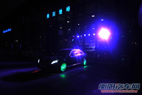 晚上20时分,走进衡阳驰峰奔驰4S店就见到展厅外停着一辆奔驰车,在灯光的照射下奔驰车非常靓丽。走近一看原来是传说的奔驰全新S级轿车400L。