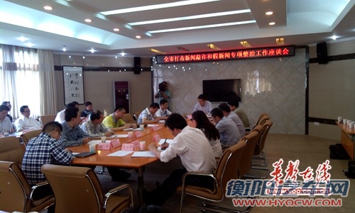 华声在线讯:(罗德耀)4月17日下午,衡阳市市委宣传部组织举行“打击新闻敲诈和假新闻专项整治工作会“,会议由市委宣传部吕部长主持。参会单位有市宣传部、七县五区宣传部、市公安局、市文化广电新闻出版局、市文化局、市工商局、市电信局等衡阳及驻衡媒体。