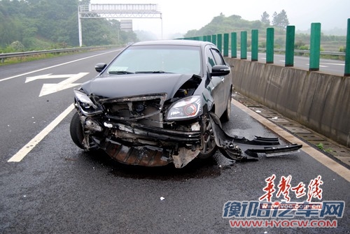 据罗先生介绍,2014年1月,他购买了一辆吉利英伦SC7。6月8日下午,罗先生驾驶该车在临武高速公路上行驶,在距雨母服务区一公里左右处,由于路面有积水,高速行驶的车辆出现飘移,在即将撞上中间隔离带时,罗先生本能的往右打了一把方向。突然的变向让高速行驶的车辆失去控制,车辆在路面划了一个“之”字之后撞在高速中间的水泥隔离带上,车辆在原地打了个圈然后停了下来。