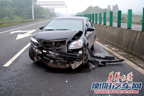 据罗先生介绍,2014年1月,他购买了一辆吉利英伦SC7。6月8日下午,罗先生驾驶该车在临武高速公路上行驶,在距雨母服务区一公里左右处,由于路面有积水,高速行驶的车辆出现飘移,在即将撞上中间隔离带时,罗先生本能的往右打了一把方向。突然的变向让高速行驶的车辆失去控制,车辆在路面划了一个“之”字之后撞在高速中间的水泥隔离带上,车辆在原地打了个圈然后停了下来。