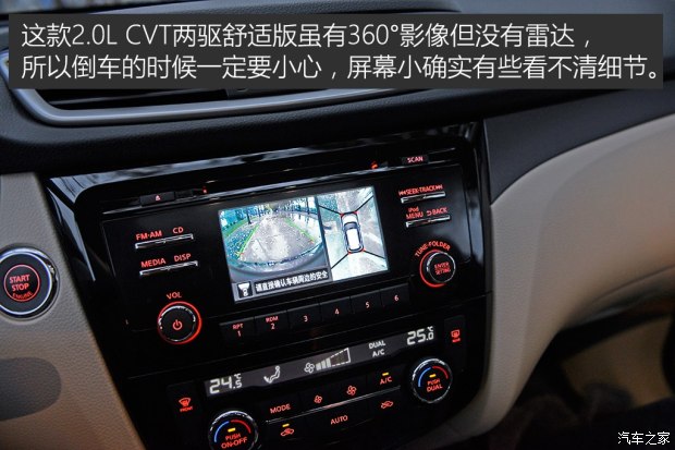 提车时,这款奇骏的“原配”是这款略LOW的5英寸小屏幕,由于到下期长测时,它就会被那款9英寸的DA屏所取代,所以本期我就先说说这款原装多媒体系统。尺寸上确实先天不足,对于这么大的SUV来说,这个屏幕显得小了些。不过基本功能都有,收音机、USB外接音源都没问题,还能显示360°的倒车影像,只是屏幕太小,显示的内容确实有些看不清。