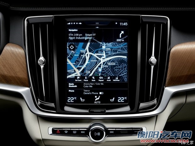 内饰方面,新车内部也是延续了XC90的简约、大气的北欧风格,木纹饰板的应用显得非常有质感,其配备了中控大屏,里面具有Sensus connect智能交互系统。两侧是空调出风口,底部则是其他功能控制旋钮,中控的整体布局和新XC90还是比较相似的。