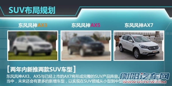 根据企业未来两年的规划,东风风神每年将投放两款全新车型,包括多款SUV和新能源车型,以完成东风风神全面布局SUV的规划。考虑到国内十分火爆的SUV市场,未来AX3与AX5的推出将助力企业实现2017年销量突破20万辆的目标。