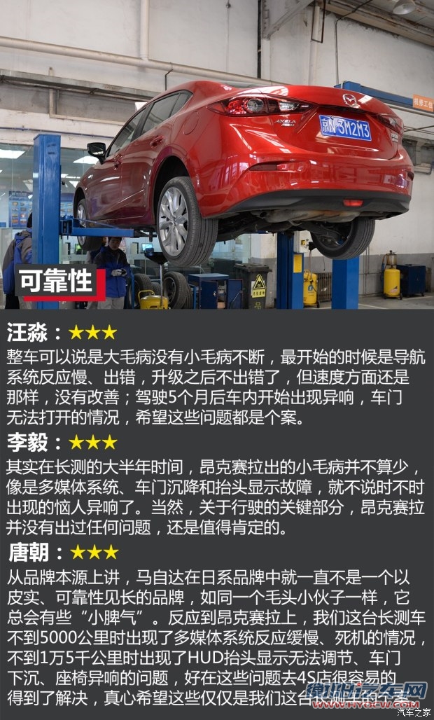 李毅:昂克赛拉就是给喜欢它的人准备的,颜值高且富有驾驶乐趣,凭着这两点,我想对于年轻消费者这就已经拥有足够的杀伤力了。虽然实用性和配置方面并不那么令人满意,间或也会出点小毛病,不过如果你真的喜欢,那么我想这些不足完全可以忽略。