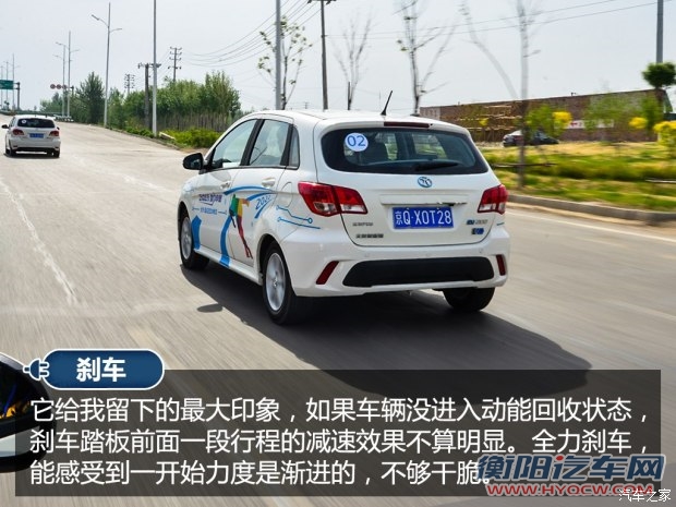 因为这次试驾过程中全程都保持车队行驶,我们没有办法对EV200的刹车进行比较极限的体验。EV200的刹车明显是向“平稳渐进”方向调校的,刹车踏板行程很长而且很软,如果不是激烈驾驶,很轻易就能让车很线性地慢下来。