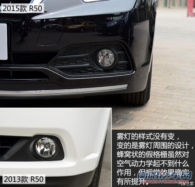 R50和D50前保险杆处进了重新设计,增加了镀铬饰条,雾灯位置的格栅也改为蜂窝状,营造出了些运动气息。跨界版本的R50X因为有黑色包围,所以这里没有改进。