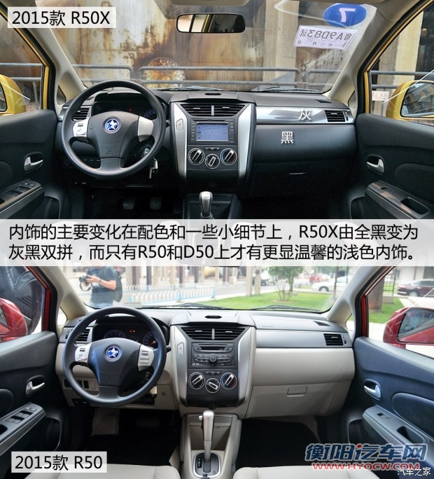 三款车内饰造型完全相同,只是由于R50X为了营造跨界气氛在内饰配色方面与R50和D50稍有不同,所以我就重点用R50X的内饰为大家介绍。