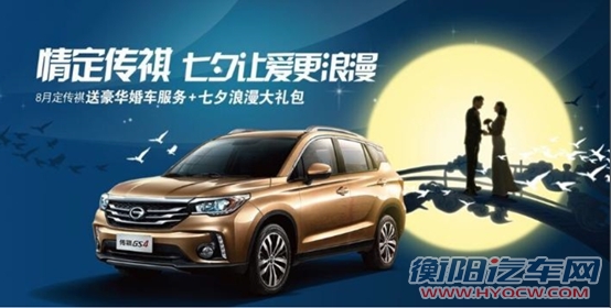 衡阳汽车网讯:7月,广汽传祺全系热销,逆势上扬劲销1.36万辆,同比增长150%。进入浪漫8月,广汽传祺为回馈广大消费者,专门为传祺新婚车主推出“买传祺送婚车服务”浓情活动。凡在8月购买传祺车且登记结婚的夫妻即可获赠浪漫礼包,享受传祺“幸福迎亲婚车队”与“七夕浪漫大礼”多重豪礼, 为新晋加入祺友大家庭的小夫妻们献上最诚挚的祝福。