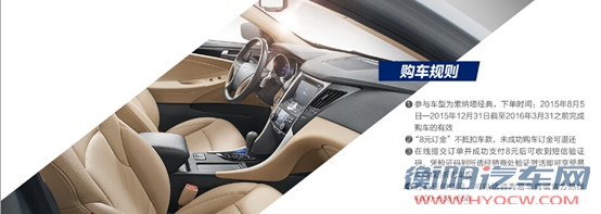 即日起到北京现代衡阳华利店购第八代索纳塔全系享8折优惠,按揭分期还享2年免息购车;我们绝对不会再让您浪费口舌、透支情谊,靠动用关系来争取底价了。无需您耗费一星半点唾沫星子,一口价“八折”,买车就是这么so easy~~ 老婆再也不用担心追不上那牛逼的公交司机了!