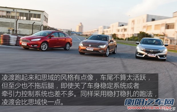 加速快是驾驶乐趣的重要来源,相信没人会嫌车太快,但在赛道跑圈的话,这真的只是其中一个因素而已。思域的加速能力不差,但急加速的时候动力响应慢,驾驶员总是需要提前踩油门,然后才能在出弯时全力冲刺,这是最扫兴的地方。另外,在这三台车里面,思域的方向盘最粗壮,手感最好,过弯的时候力度明显变沉,而且能够通过方向盘感知车身姿态的变化,这点思域做得最好。的思域转向力度和凌渡差不多,但更灵活,和福克斯比的话无论力度反馈还是转向精度都更好。