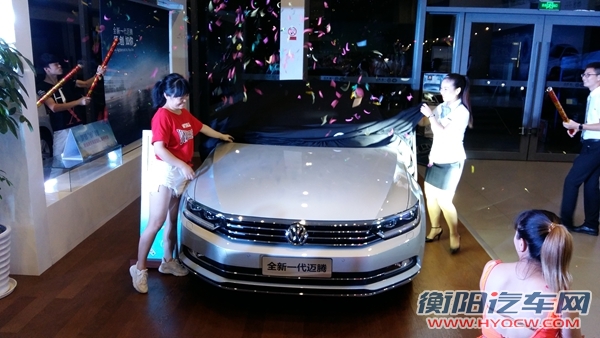 衡阳长久博华销售经理付女士与全新迈腾的第一位车主共同为新车揭幕