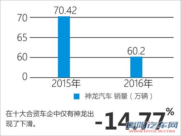 在十大合资车企中仅有神龙出现了下滑,排名也随之发生了变化。一汽丰田上升至第七;广汽本田完成了对神龙汽车和东风悦达起亚的超越,升至第八位;神龙汽车则跌至第十位。神龙汽车在2016年销量有所下滑,但也在积极的调整当中,并计划在2017年推出全新旗舰SUV标致5008和雪铁龙全新中型SUV。
