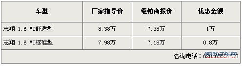 近日,笔者从长安志翔广州地区经销商处了解到,目前志翔三厢有1万元的现金优惠,最低售6.98万起,目前店内有少量现车在售,喜欢这款车型的消费者可到店详谈。欲知更多优惠请致电020-85551760.