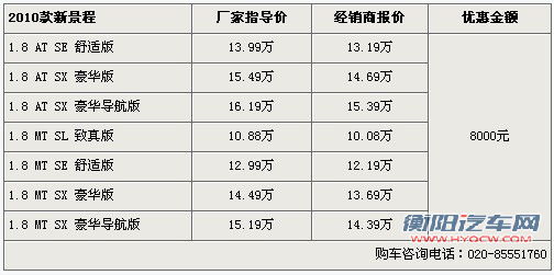 2、超高性价比中轿车代表 新景程优惠8000元