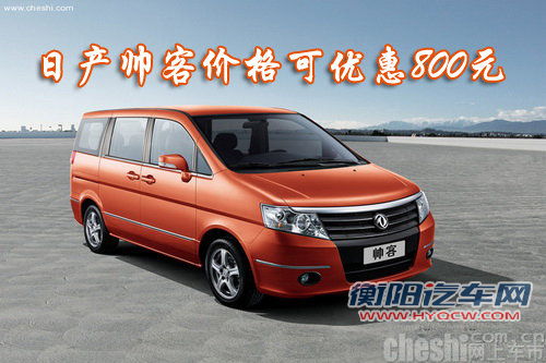帅客与东风标致307同属一个平台,同时还会搭载标致307 1.6升发动机。近日,本站编辑在大连东风日产中升奥通专营店了解到,现阶段购买日产帅客可享受到800元的现金优惠,并且现车供应比较充足。详见下表:
