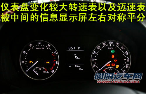 新款明锐的仪表盘与老款的区分较为明显,转速表以及迈速表依然被中间的信息显示屏左右对称平分,仪表盘上的刻度也比老款看起来更加干净清晰,水温表以及油量表从上端分别下移到了两个主仪表盘内,中间的信息显示屏看起来也更加舒服,科技含量似乎更高。