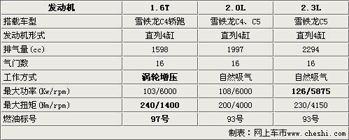 目前雪铁龙原装进口的C4轿跑车型上运用了雪铁龙1.6T涡轮增压发动机,从上表的数据我们可以看出1.6T引擎的动力十分强劲,1.6T引擎在1400转时就可以达到240Nm的最大扭矩输出,相比2.3L自然吸气的发动机还要高出10Nm,完全可以满足人们的日常需求。该引擎的引入将进一步完善东风雪铁龙车型的产品线,来满足不同消费者的需求。