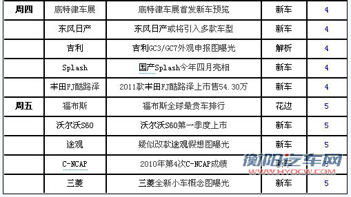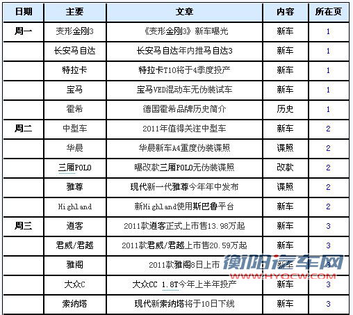 在这2011年的第一周里,新车消息不断,同时也有不少改款车型上市,下面就请跟随编辑来一同回顾本周要闻吧。