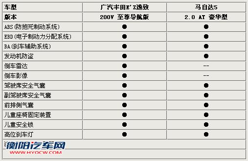 两车在安全性上表现均非常出色,ABS、EBD、BA等主动安全配置一个不落,前排气囊和前排侧气囊也是均有配备。不过,逸致配备的倒车影像系统让其在与马自达5的较量中得以胜出。