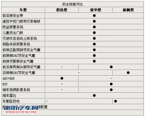 再看安全性方面,三车的安全性也是除了2.0T引擎外的又一大亮点,其中舒适性6安全气囊、豪华型8安全气囊、旗舰型达到了同级中少有的安全气囊;集成了遥控中控门锁和后备箱锁的防盗遥控钥匙成了三车的标配,另外ABS+EBD、钥匙未拔报警系统;前后安全带、儿童安全门锁、行驶状态自动落锁也成了三车的标配;但集成了ABS+EBD功能的ESP电子稳定系统成了豪华型和旗舰型的配置;倒车雷达成了三车的标配,倒车影像只有配备在豪华型和旗舰型上,另外更加人性化的车载医药包成了旗舰型的独享~