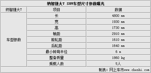 这款即将国内首推的纳智捷大7SUV,与之前在台湾上市的车型基本没有区别,车身尺寸为长4800mm、宽为1930mm、高为1730mm,轴距达到了2910mm。这款车型在空间方面也很有优势,将采用5+2的七人座椅布局。