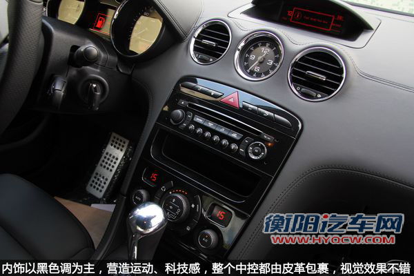 RCZ内饰以黑色基调为主,而且整个中控台都由皮革包裹。方向盘宽大厚实,便于灵活驾驶,不过标致RCZ并没有集成多功能按钮,不免有些遗憾。另外,新车的车门还采用了无框式设计。如果您想更详细的体验RCZ的外观内饰特点,请点击查看《浪漫主义流派 PCauto实拍标致跑车RCZ》