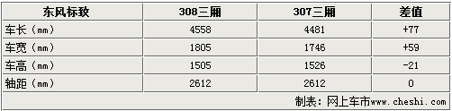 东风标致即将推出的308车型与307相同,都将推出三厢版本和两厢版本。在车身尺寸方面,新款308的长X宽X高分别达到了4558X1805X1505mm。与307相比车身尺寸有所增加,不过这款车的轴距依然为2612mm。