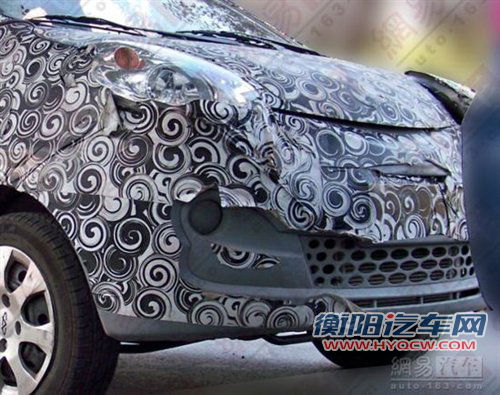 在严密的伪装干扰下自然无法一眼辨别出整体造型风格,此外前大灯也临时借用于瑞麒M1,而且很有意思的将M1的灯具翻转过来。从前车门稍许裸露的部分可以清晰的看到高腰线条非常明显,说明此车的初期设计偏向运动化,这可能与QQ的圆润风格略有出入。
