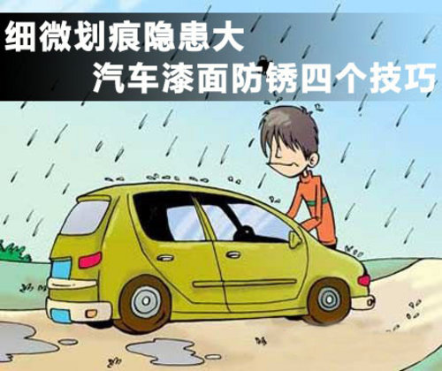车漆表面经常出现锈蚀,除了常见的碰撞、刮伤外,行车时车胎弹起的小石块打在漆面上,也会使漆面出现一个个剥落的小点,时间久了就会产生小锈斑。而这些小伤痕因为大多在不起眼处,容易被人忽视。因此,平时要定期检查车体,发动机舱盖和车身四周,一旦发现就要及时到专业美容店进行处理。