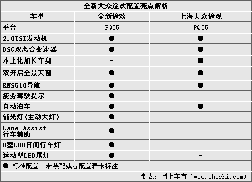 全新途欢车型重点的改进就是尾灯,加入了LED日间行车灯。U造型也是大众家族的统一风格。在大灯造型方面和老款车型也有不同,更加接近途锐的设计。
