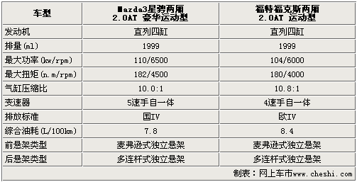 动力方面,马自达3星骋两厢与福克斯两厢均采用了2.0L直列四缸发动机,两者展现出的动力均非常出色。马自达3顶配车型变速器则采用的是5速手自一体变速器,较福克斯的4速更能保证了动力的完整输出。悬挂两者均采用了前麦弗逊独立悬挂和后多连杆悬挂的经典搭配,驾驶性能上完美突显了其“弯道舞者”与动力充沛的特点。