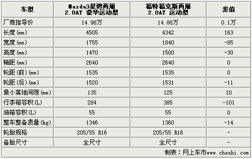 从上表不难看出,马自达3星骋两厢顶配车型价格上与福克斯两厢仅相差1千元,可以说两款车均有着出色的性价比。而在车身尺寸上马自达3与福克斯的长宽高均有差别,马自达3要更加修长,而福克斯则更加宽大一些。此外,马自达3的离地间隙要更大一些,这也提升了车身整体的行驶通过性。值得一提的是,两款车均配备了全尺寸备胎,这样的表现值得称赞。