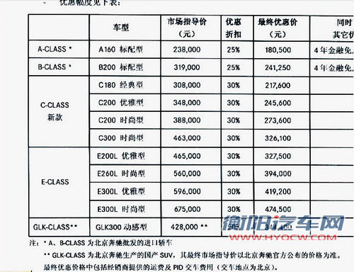 从这个表中我们可以看到国产奔驰GLK300动感型的官方指导售价为42.8万,这与之前国产GLK下线时透露的预售价格保持一致,只是下方的备注说明了最终指导价格以北京奔驰官方价格为准,42.8万的指导价格可能还存在变数。当然无论最终的指导价格多少,BBAC的员工及其直系亲属均只需34.44万即可买到这款车。