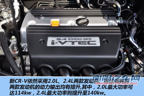 配置方面,新CR-V配备了VSA综合控制系统,其中包括了坡起辅助,TCS,电动助力转向,ABS和EBD。而四驱系统的减重17%则为新CR-V带来了更好的燃油经济性。动力方面则保持现款车型的动力不变,不过经过了重新调教之后燃油经济性有所改善,发动机的型号也随之有所改变,其中2.0L车型的发动机型号从R20A1变成了R20A7;2.4L车型的发动机型号从K24Z1变成了K24Z8。2.0L机型最大功率从110kW提升到114kW;2.4L机型最大功率从125kW大幅提升到140kW。
