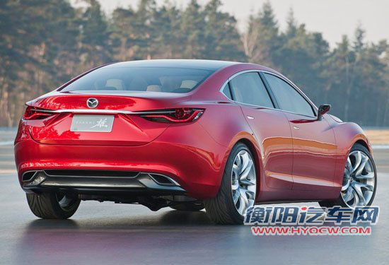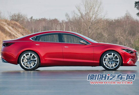 在外观设计方面,全新一代马自达6在外观设计会借鉴很多来自Takeri概念车的设计元素,特别在车身轮廓方面会有极高的相似性,只是细节方面量产版的马自达6会舍弃一些概念化的设计元素,这一点已经获得了马自达官方已经证实。从Takeri概念车的外观设计来看,它遵循着马自达的Kodo(魂动)设计理念,车型的线条感十足,拥有更低的风阻系数。大尺寸的进气格栅以及细小的前大灯展现了一种另类的力量感,舒展的C柱显得相当大气,迷人的尾灯以及短尾箱的设计延续了其轿跑风格的设计。换代马自达6的车身的长度预计会在4.8米左右,相比现款车型会略有提升,配合接近2.8米左右的轴距能够拥有更有竞争力的内部空间。