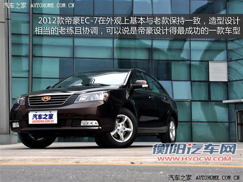 与以往的吉利车型相比,帝豪EC7整体水平有了很大的进步,是吉利汽车打造的高品质紧凑型车。该车在外观、内饰空间、被动安全性和动力性能方面都有着不错的表现。正因为这样,在推出两年里面,它在市场上受到众多消费者的关注。前段时间,帝豪EC7推出了2012款车型,这次小改款在外观方面主要是针对细节及做工工艺进行了改动,从而提升竞争力。因此在外观造型上,它并没有太大的变化,仍然是我们所熟悉的帝豪EC7。