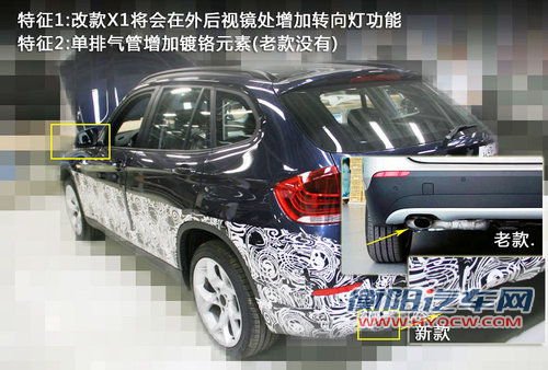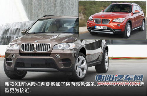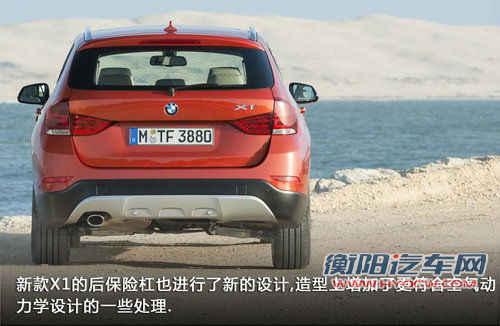 新款X1相比现款宝马X1,整体表现在车身包围上。前后保险杠的造型有所调整,头唇两侧重新设计了两个进气口,以便于增加下压力,并使其造型设计显得更具进攻性。而后视镜也改变了原有造型,并集成了时下流行的转向灯,增加了转向安全性。