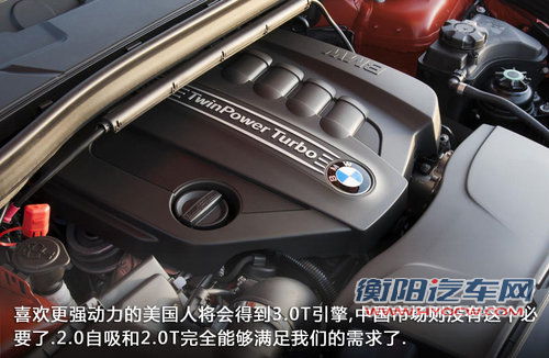 小改款的X1在动力上除了原有的2.0T涡轮增压发动机之外,新增了N55 3.0T涡轮增压发动机,不过搭载3.0T发动机的X1 xDrive35i只限于美国地区,国产X1将继续保持2.0L自然吸气和2.0T涡轮增压两款动力。